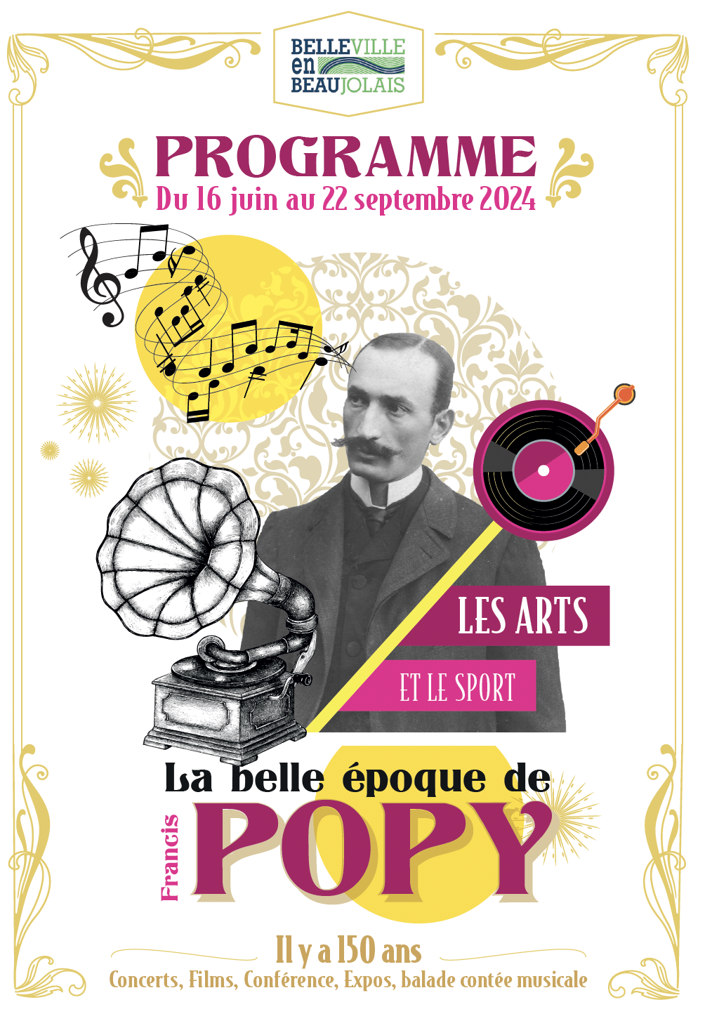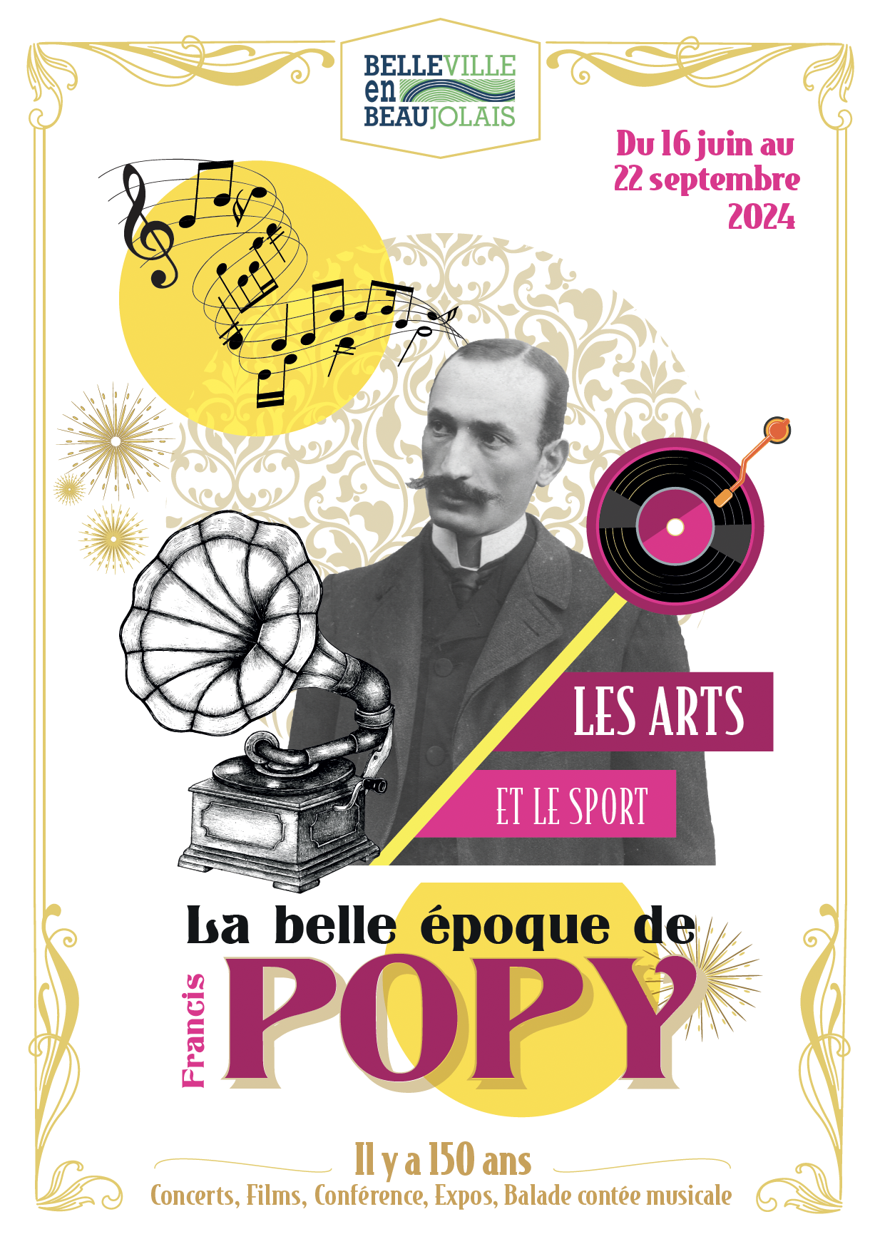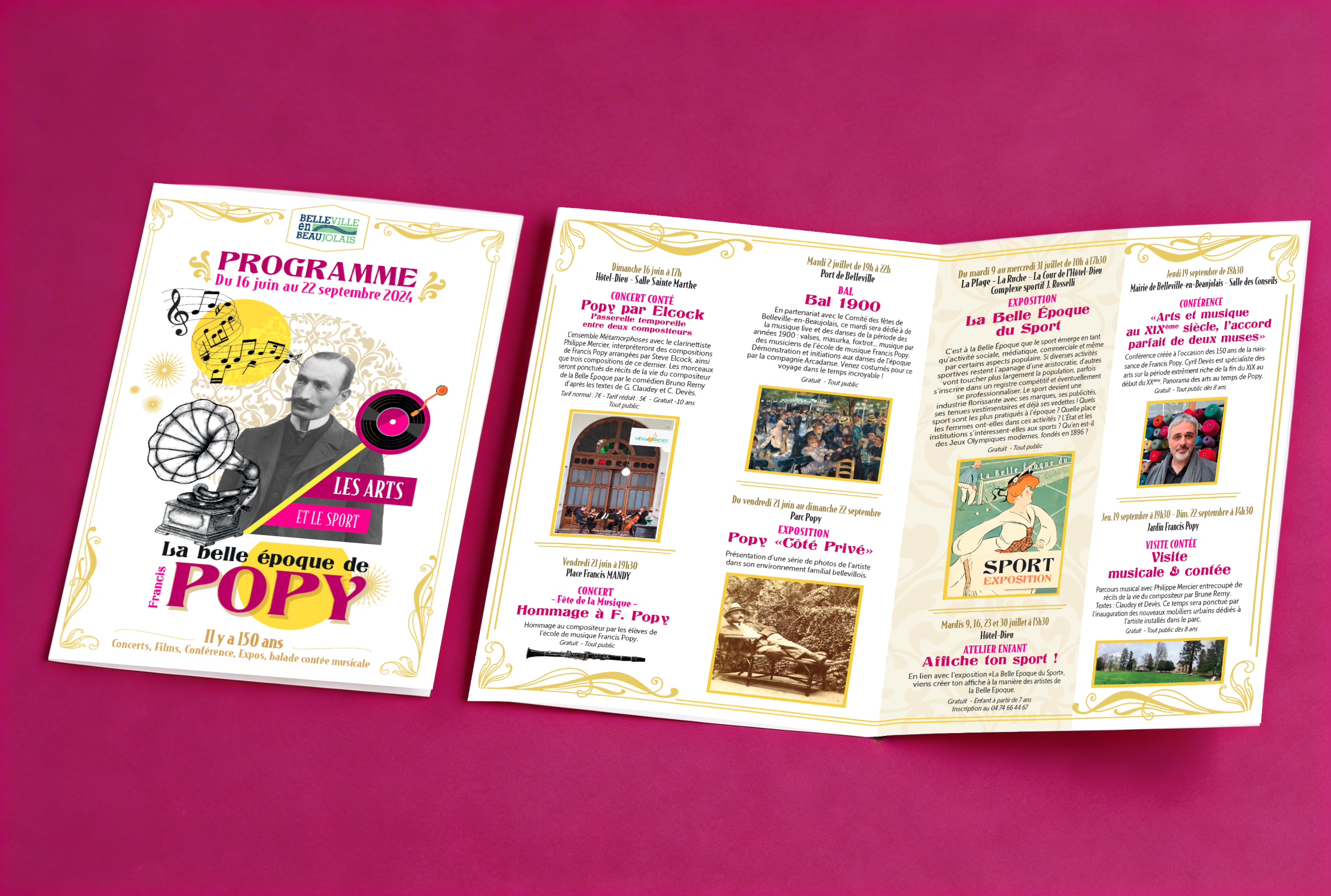 Création de l’identité visuelle pour le temps fort des 150 ans de la naissance du compositeur Francis Popy. Affiche, dépliant de programmation, affiche grand format et panneau d’entrée de parc en Corten . 2024